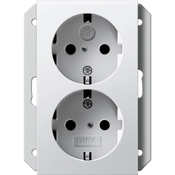 Gira stopcontact met randaarde en verhoogde aanraakbeveiliging, 2-voudig voor enkele inbouwdoos. Systeem 55, wit mat. Afdekken met een 1,5-voudig afdekraam. Meer informatie »