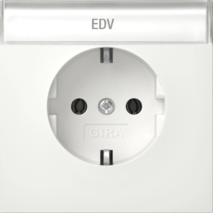 Gira stopcontact met randaarde en tekstkader, F100, wit glans. Met klauwbevestiging. Meer informatie »