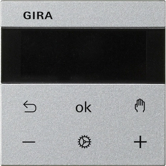 Gira Systeem 3000 thermostaatknop met display en Bluetooth, Systeem 55, aluminium mat. Bediening met knoppen of de Gira app. Voor op een Systeem 3000 kamerthermostaat basiselement met voeleraansluiting, relais- of elektronische schakelaar. Meer informatie »