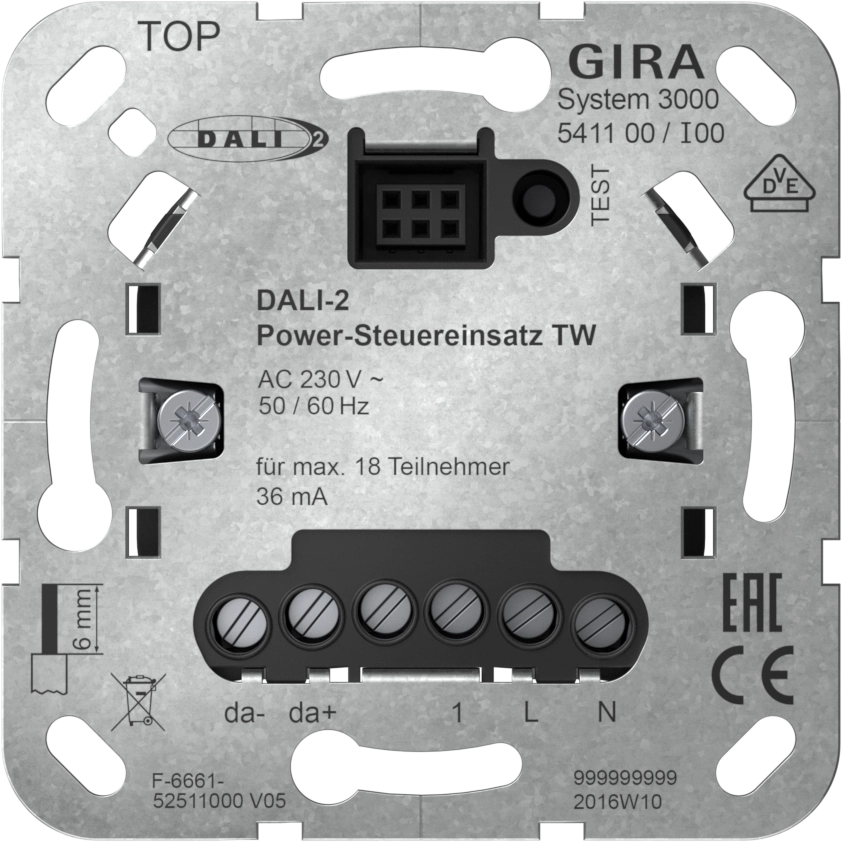 GIRA Systeem 3000 DALI-Power-besturingseenheid met geïntegreerde netvoeding voor 18 DALI-deelnemers. Lichtsterkte- en kleurtemperatuurregeling voor lampen met DALI-interface Type 8 (Tunable White, IEC 62386-209). Compatibel met DALI-2 besturingen. Meer informatie »