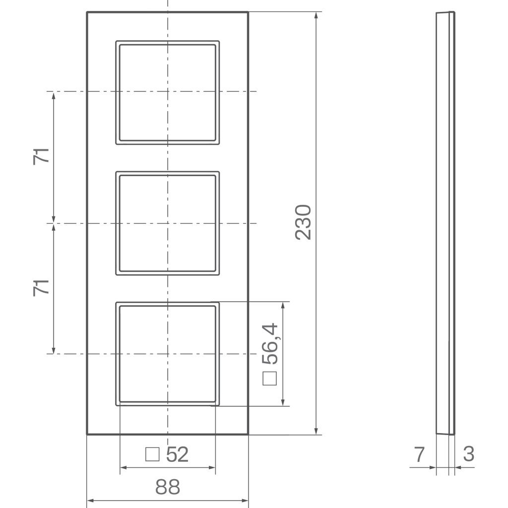 Hager Berker 3-voudig afdekraam, voor verticale montage, A.8, aluminium (geanodiseerd, geborsteld). Afm.: 88x230x10mm.
