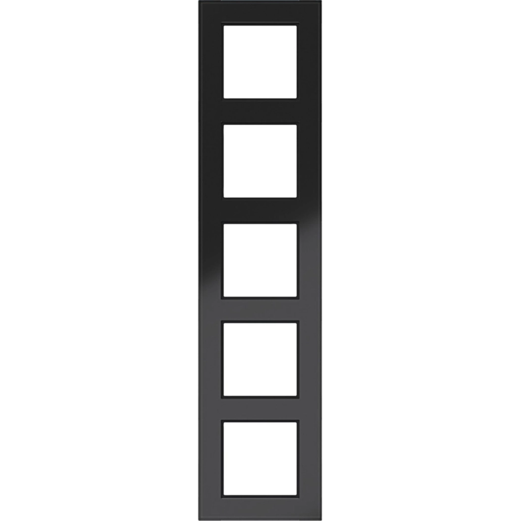 Hager Berker 5-voudig afdekraam, voor horizontale en verticale montage, A.8, glas zwart (glanzend). Afm.: 88x372x10mm.