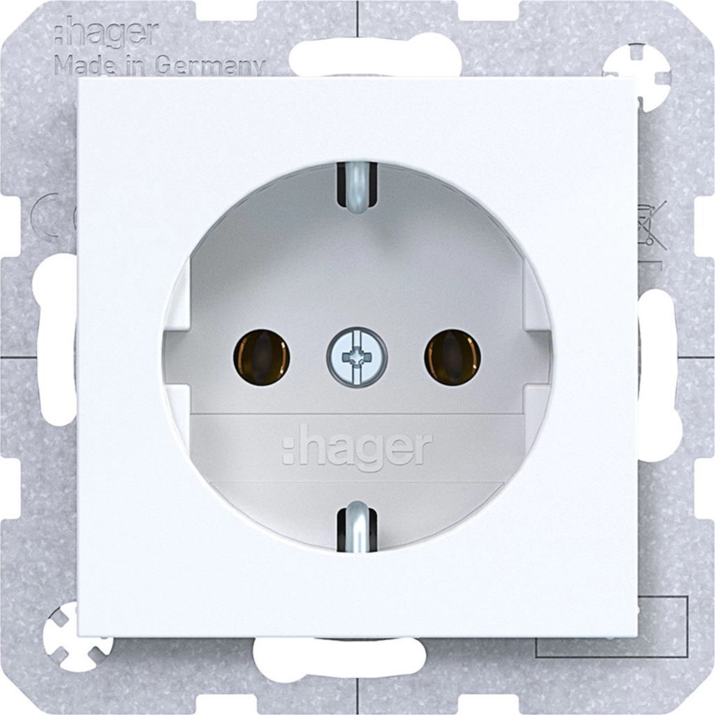 Hager Berker randaarde stopcontact, A.1/A.8/C.1/C.8, lichtwit glans. Met klauwbevestiging/spreidklemmen. Excl. afdekraam.