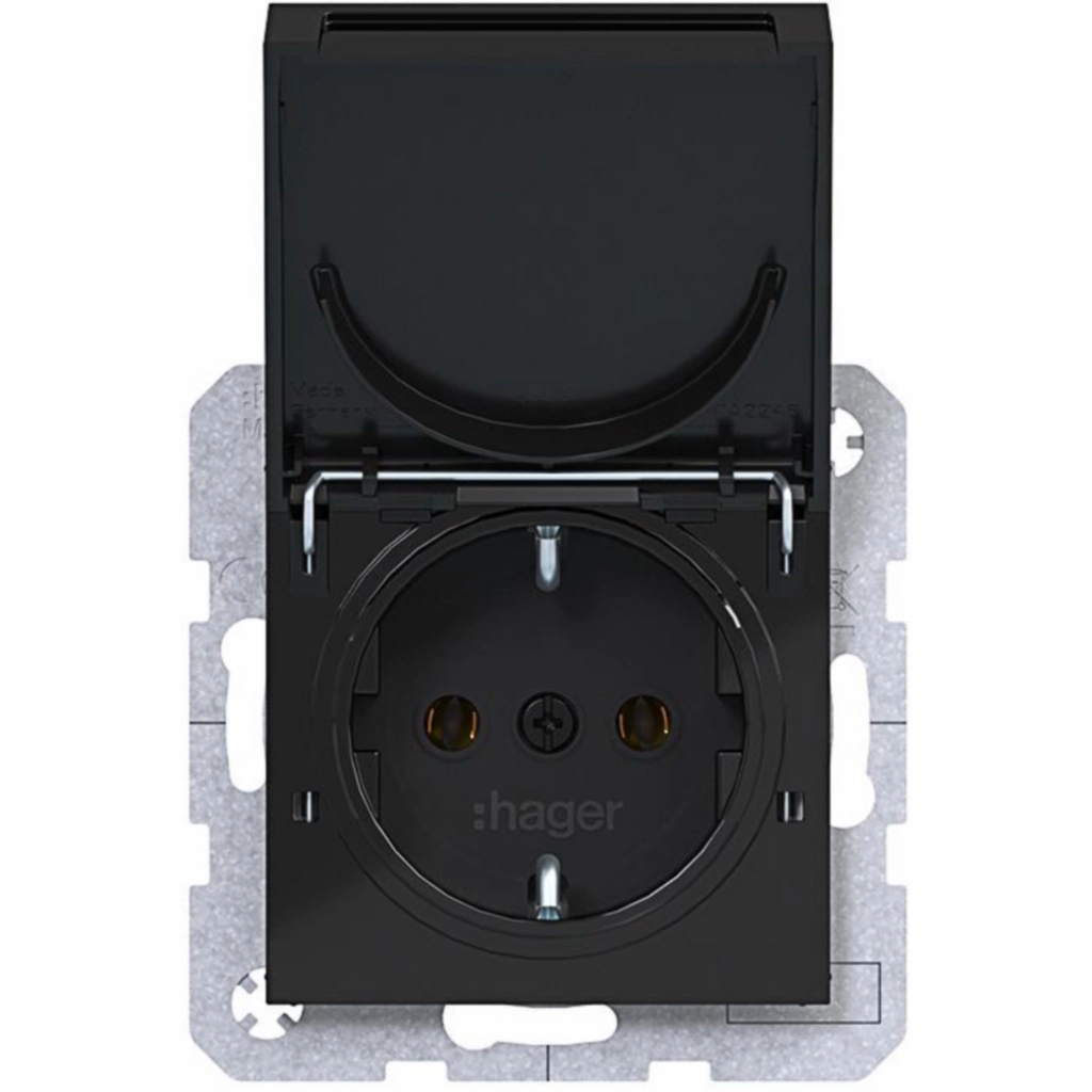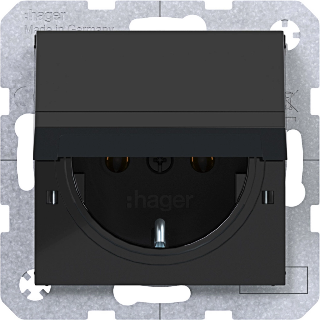 Hager Berker randaarde stopcontact met terugverend klapdeksel (kan in eindstand worden vastgezet), A.1/A.8/C.1/C.8, nachtzwart glans. Met klauwbevestiging/spreidklemmen. Excl. afdekraam. Meer informatie »