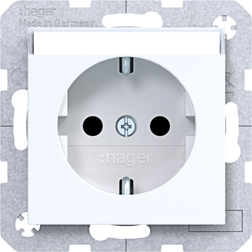 Hager Berker randaarde stopcontact met verhoogde aanraakbeveiliging en tekstveld, A.1/A.8/C.1/C.8, lichtwit glans. Met klauwbevestiging/spreidklemmen. Excl. afdekraam.