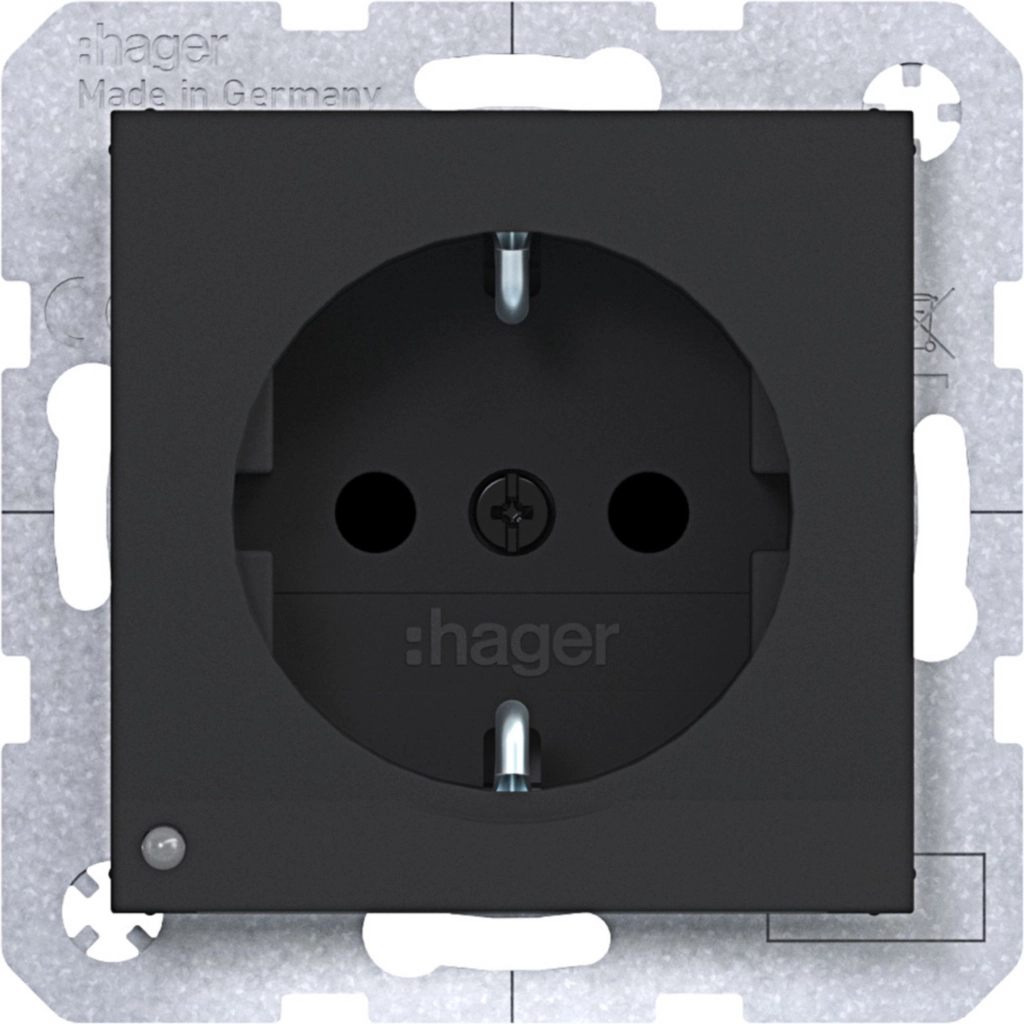 Hager Berker randaarde stopcontact met verhoogde aanraakbeveiliging en LED-oriëntatielicht., A.1/A.8/C.1/C.8, nachtzwart mat. Met klauwbevestiging/spreidklemmen. Excl. afdekraam.