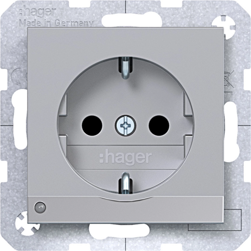 Hager Berker randaarde stopcontact met verhoogde aanraakbeveiliging en LED-oriëntatielicht., A.1/A.8/C.1/C.8, titaan mat. Met klauwbevestiging/spreidklemmen. Excl. afdekraam.