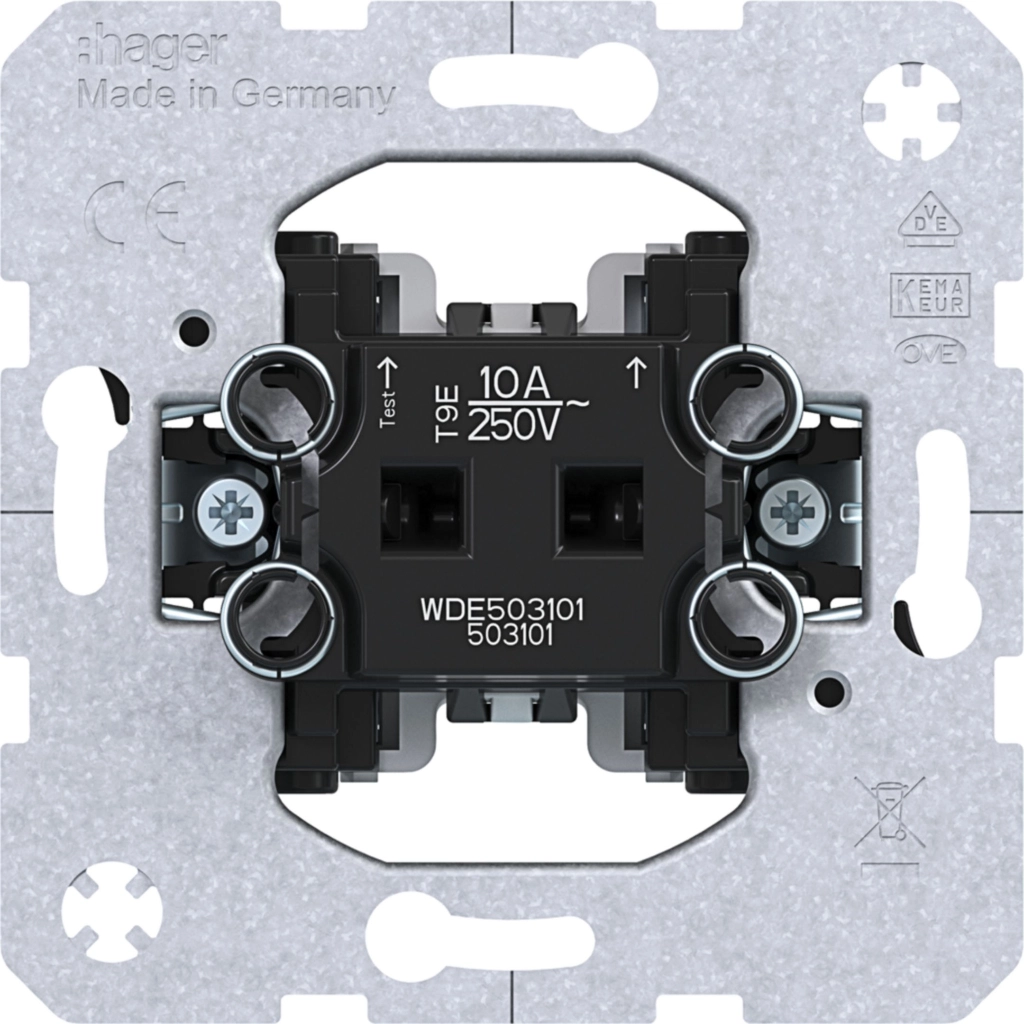 Hager Berker enkelvoudige pulsdrukker met maakcontact en twee separate meldcontacten, 10 A. Met klauwbevestiging (spreidklemmen). Excl. schakelwip en afdekraam.