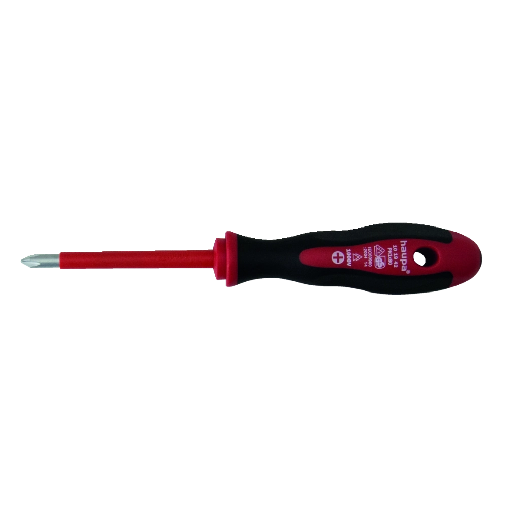 Haupa VDE-schroevendraaier, kruiskop Phillips PH1. Klinglengte: 80 mm, totale lengte: 175 mm. 2-componenten greep, geïsoleerd tot 1000 V, VDE-getest, conform IEC 60900. Meer informatie »