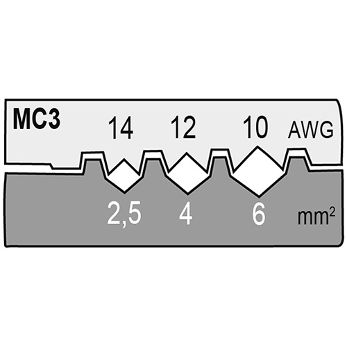 HAUPA 211657 perstang voor fotovoltaiek. Vierkantpersing (MC 3). 2,5 - 6 mm2. Met ontgrendelbare veiligheidsblokkering. Knipdruk afstelbaar. Meer informatie »