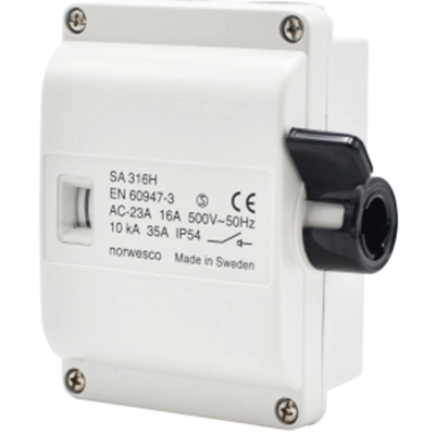 Norwesco SA316H werkschakelaar 3P+hulpcontact 16A/500V M20 grijs IP54