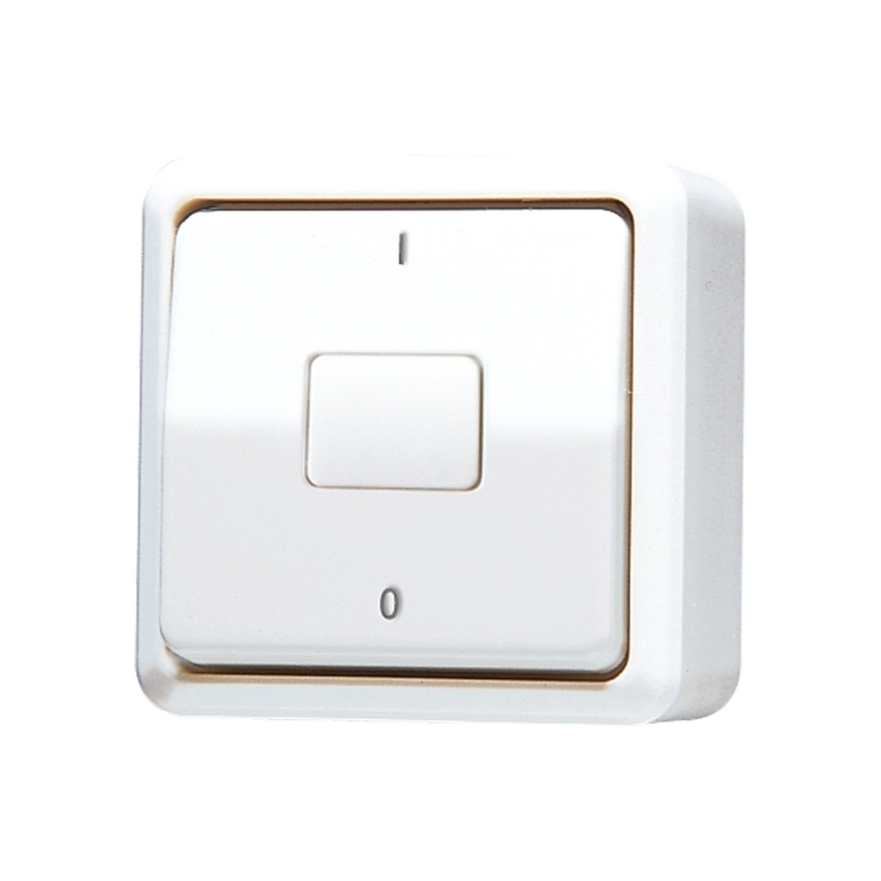 JUNG opbouw schakelaar, 2-polig, 10 A/ 250 V AC, AP 600, alpine wit. Wip voorzien van opdruk 1-0. Bedrading aansluiten middels insteekklemmen. Exclusief bodemplaat.
