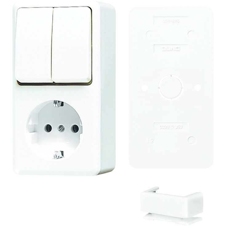 JUNG opbouw combinatie serieschakelaar/wandcontactdoos randaarde, 10 A/ 250 V AC, AP 600, alpine wit. Geschikt voor het schakelen van 2 lichtpunten vanaf 1 plek (niet geschikt voor wisselschakelingen). Incl. bodemplaat en kanaalinvoerstuk K25. Meer informatie »