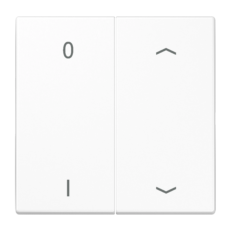 JUNG 4-kanaals wandzender met 0-1 en pijlsymbolen zonder netvoeding of batterijen. LS 990, alpine wit. Stuurt schakel-, dim- of jaloeziecommando’s naar EnOcean-ontvangers. Thermoplast (hoogglans). Excl. afdekraam.