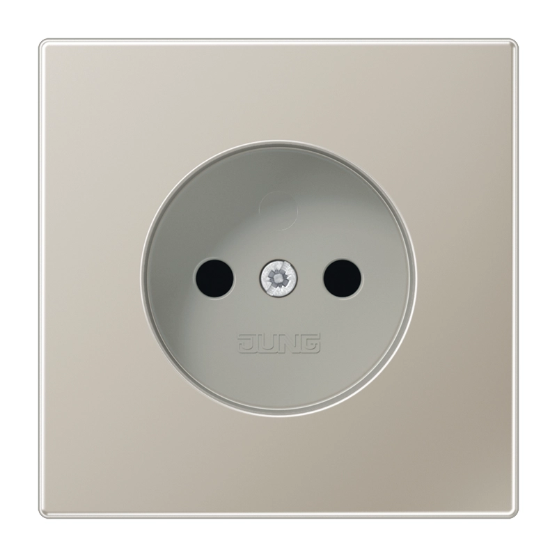 JUNG stopcontact zonder randaarde, LS 990, edelstaal (metaaluitvoering). Bedrading aansluiten met schroefklemmen. Excl. afdekraam.