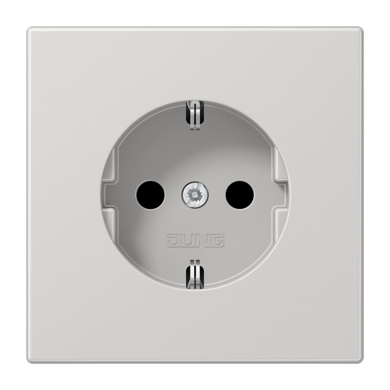 JUNG stopcontact met randaarde en verhoogde aanraakbeveiliging, LS 990, lichtgrijs. Bedrading aansluiten met insteekklemmen, de draagring is aangesloten op de aardverbinding. Duroplast, zeer krasvast en glanzend. Excl. afdekraam.