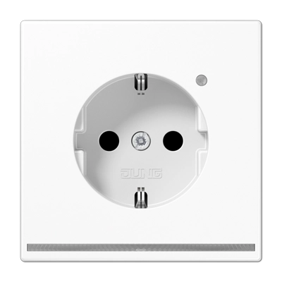JUNG stopcontact met randaarde, Safety+ (kinderbeveiliging), LED-oriëntatieverlichting (3500 Kelvin) en geïntegreerde lichtsensor, LS 990, alpine wit. Verbruik: stand-by 0,3 Watt / in bedrijf 0,5 Watt. Bedrading aansluiten met insteekklemmen. Vereist een diepe inbouwdoos (min. 50 mm). Thermoplast (hoogglans). Excl. afdekraam.