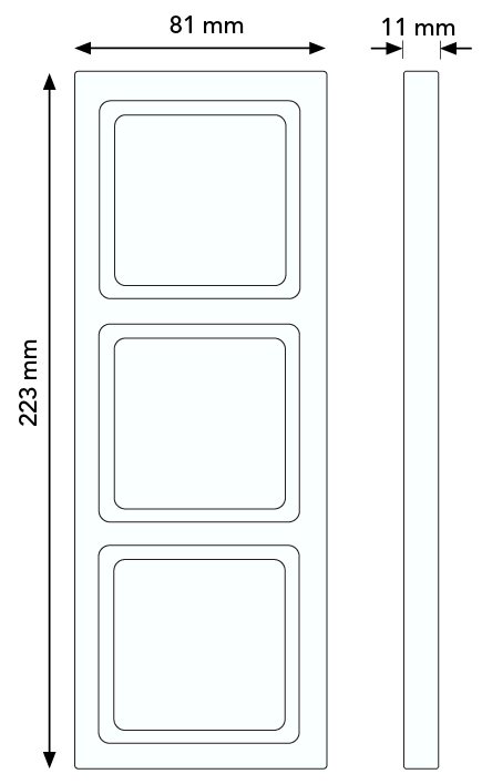 JUNG 3-voudig afdekraam, voor horizontale en verticale montage, LS 990, zwart. Afm.: 81 x 223 x 11 mm. Duroplast, zeer krasvast en glanzend.