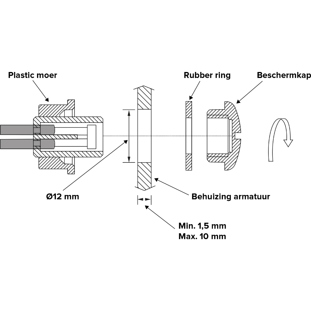| Geschikt voor beschermingsgraad (IP) | IP65 |