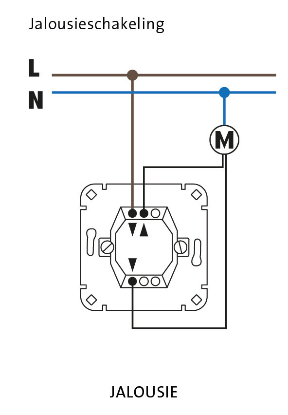 Kopp jaloezieschakelaar, 1-polig, 10A. De knop kan na het indrukken worden losgelaten. Bevestiging met klauwen of schroeven. Excl. schakelwip en afdekraam.