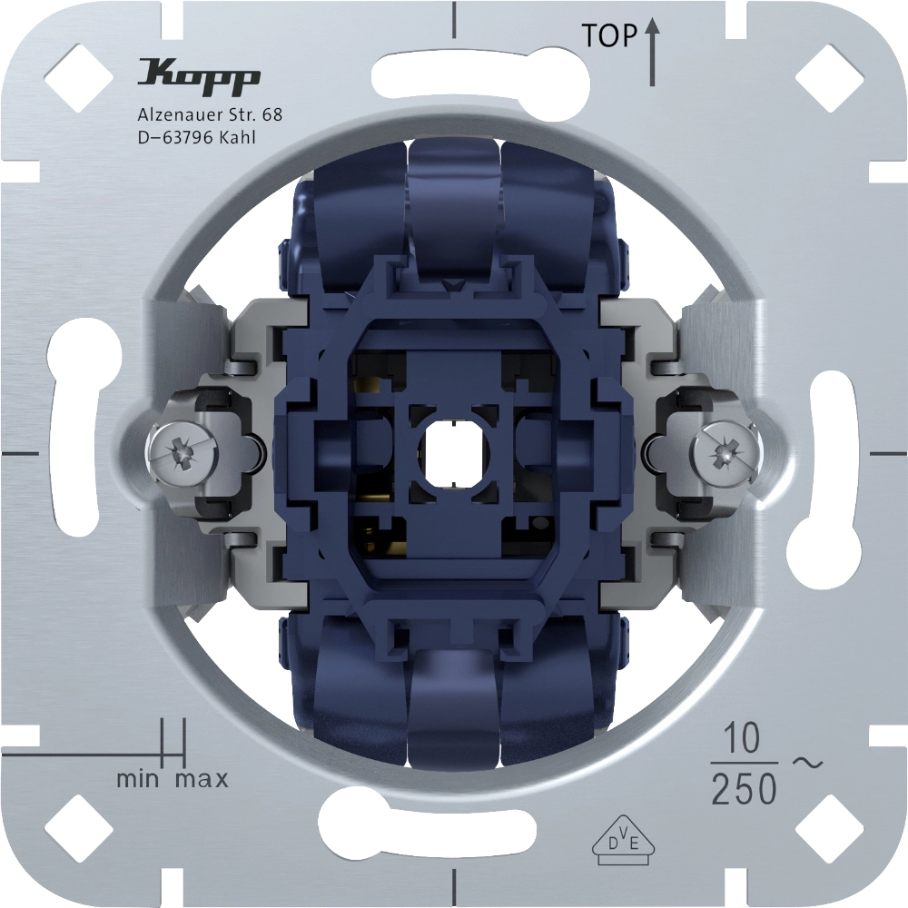 Kopp professionele kruisschakelaar, 10 A. Voor plaatsing tussen twee wisselschakelaars (hotelschakeling) om één lichtpunt vanaf drie of meer locaties te bedienen. Met klauw-/schroefbevestiging. Excl. schakelwip en afdekraam.