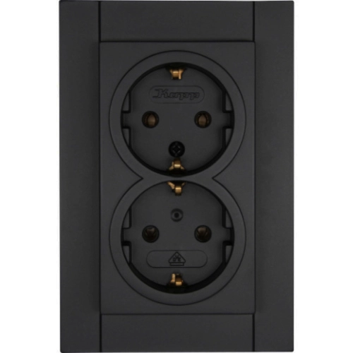 Kopp dubbel stopcontact met randaarde, HK07, zwart mat. Geschikt voor een enkele (ronde) inbouwdoos.