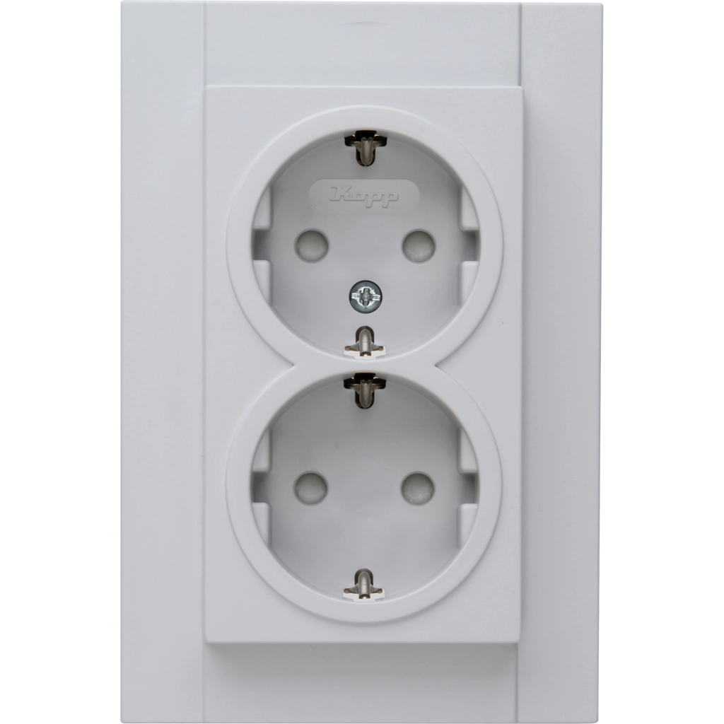 Kopp dubbel stopcontact met randaarde en kinderbeveiliging, HK07, kleur: grijs mat. Geschikt voor een enkele (ronde) inbouwdoos.