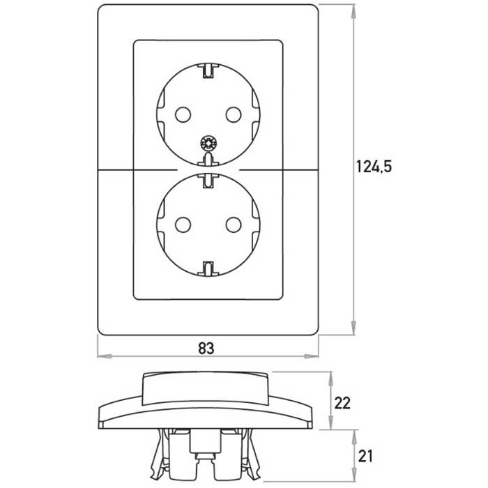 Kopp dubbel stopcontact met randaarde, HK05, zwart mat. Geschikt voor een enkele (ronde) inbouwdoos.