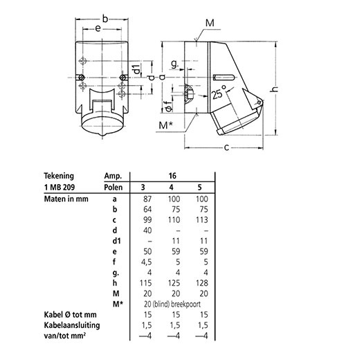 Mennekes 111 CEE-wandcontactdoos 5-polig, 16A. Voltage: 400 Volt. Hertz: 50-60 Hz. Beschermingsgraad: IP44. Uurstand: 6 uur. Kleur: rood. Aansluittechniek: schroefklemmen. Certificering: VDE/EAC. Kabelinvoer: 1x boven en 1x onder (blind). Meer informatie »