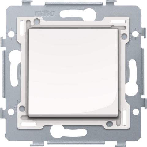 Niko kruisschakelaar incl. schakelwip, voor het plaatsen tussen twee wisselschakelaars in een hotelschakeling. 10 A / 250 V AC. Bedrading via insteekklemmen (max. 2,5 mm²). Geleverd zonder spreidklemmen/klauwbevestiging. Kleur: bright white (hoogglans).