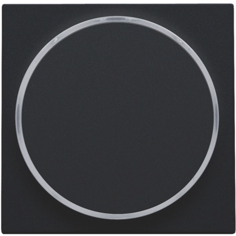 Centraalplaat met doorschijnende ring voor drukknop. De zijring laat toe dat de amberkleurige led aangeeft wanneer jet licht geactivieerd is. Het kan ook als een soort signaallamp gebruikt worden. Afwerkingskleur: black coated. K... Meer informatie »