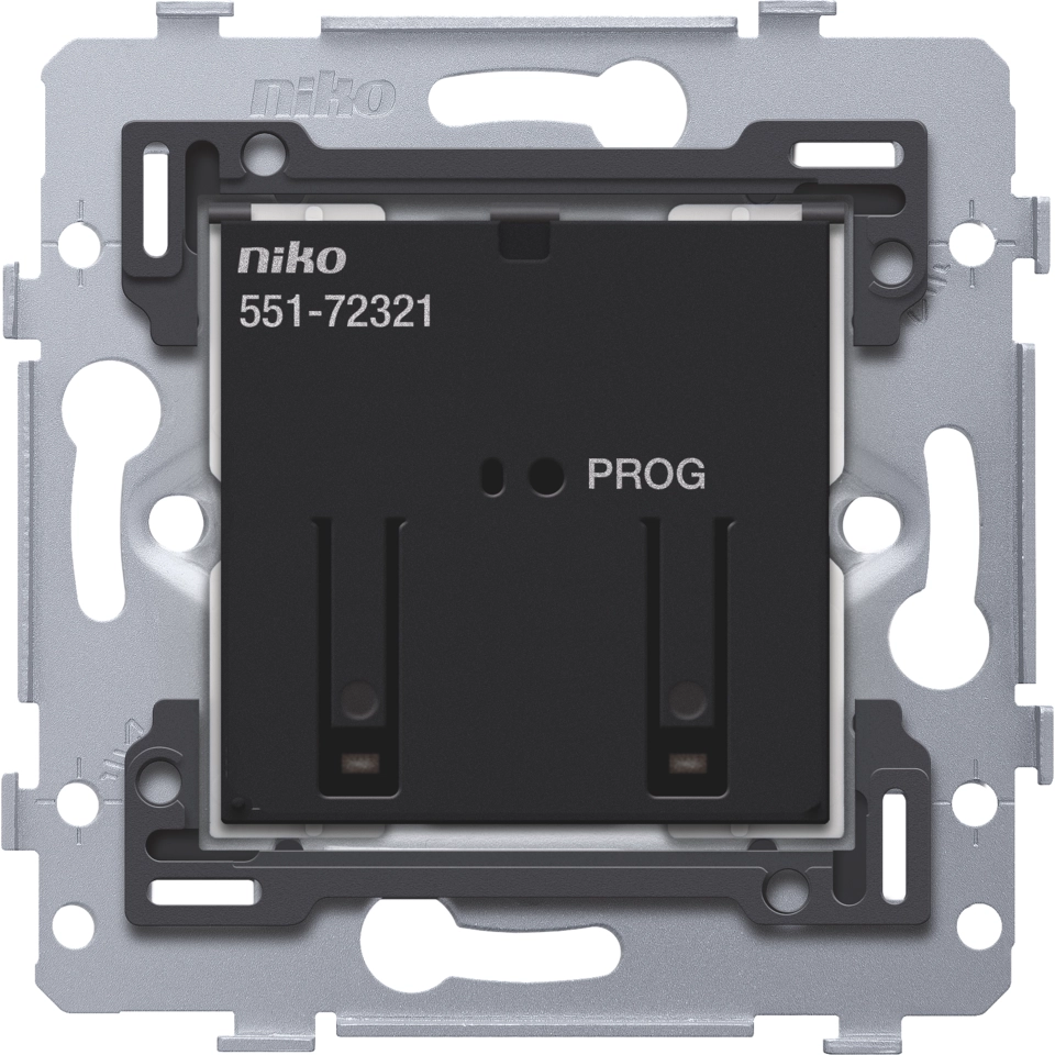 Niko geconnecteerde motorbediening, deze schakelaar vervangt een traditionele rolluik-/jaloezieschakelaar. Zonder de hub kan de schakelaar alleen contacten in-/uitschakelen, zonder extra instellingen zoals sfeer- of alles-uitfuncties. Niet compatibel met de draadloze bridge (550-00640). Maakt gebruik van het Easywave-communicatieprotocol.