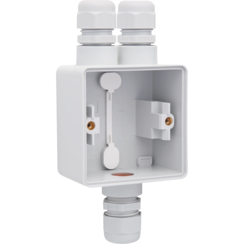 Deze opbouwdoos met één tweevoudige M20-ingang met wartel en één enkelvoudige M20-ingang met wartel is geschikt voor het inbouwen van één functie. Het geheel is spuitwaterdicht wat het uitermate geschikt maakt voor gebruik in vochtige ruimtes en veeleisende omgevingen. Afwerkingskleur: grijs. Spuitwaterdichte opbouwdoos met één tweevoudige M20-ingang met wartel en één enkelvoudige M20-ingang met wartel voor het inbouwen van één functie, grijs. De bevestigingspunten bevinden zich 50 mm uit elkaar op een verticale as. Deze maataanduiding bevindt zich onuitwisbaar op de bodem van elke doos. De ovale schroefopeningen laten toe een onnauwkeurige boring op te vangen. Een afdichting waarborgt, door een persborging, de beschermingsgraad en de dubbele isolatie. De doos beschikt over twee diagonaal uitbreekbare condensatieopeningen. De opbouwdoos is vervaardigd uit slagvast, stofwerend, halogeenvrij en zelfdovend polypropyleen (UL94-V2/1,6 mm).