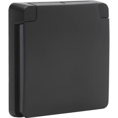 Dit aanpaskader wordt gebruikt om 45 x 45 mm-functies in spuitwaterdichte opbouwdozen in te bouwen. Het is geschikt voor datamodules, telefooncontactdozen, audio-aansluitingen en TV/FM-contactdozen. Het aanpaskader is voorzien van een beschermklep met scharnieren. Kleurcombinatie: zwart. Aanpaskader met deksel voor 45x45mm-functies in spuitwaterdichte opbouwdozen. Het aanpaskader kan o.a. datamodules, telefooncontactdozen, audio-aansluitingen en TV/FM-contactdozen bevatten. De functie wordt in een spuitwaterdichte opbouwdoos geplaatst. De functie heeft een aangespoten dichting en sluit hermetisch af op de aangepaste doos. Het deksel heeft een aangespoten dichting en sluit hermetisch af op de aangepaste doos. Het aanpaskader is vervaardigd uit slagvast, stofwerend, halogeenvrij en zelfdovend polypropyleen (UL94-V2/1,6 mm). Het beschermingsdeksel is vervaardigd uit vormvaste ABS.