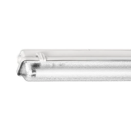 Norton TL-armatuur zonder lichtbron, met transparante gestructureerde kap. Geschikt voor één TL-buis van 1500 mm met G13-fitting (niet meegeleverd). Behuizing: grijs kunststof, kap: transparant kunststof. Afmetingen (l × b × h): 1571 x 90 x 105 mm.