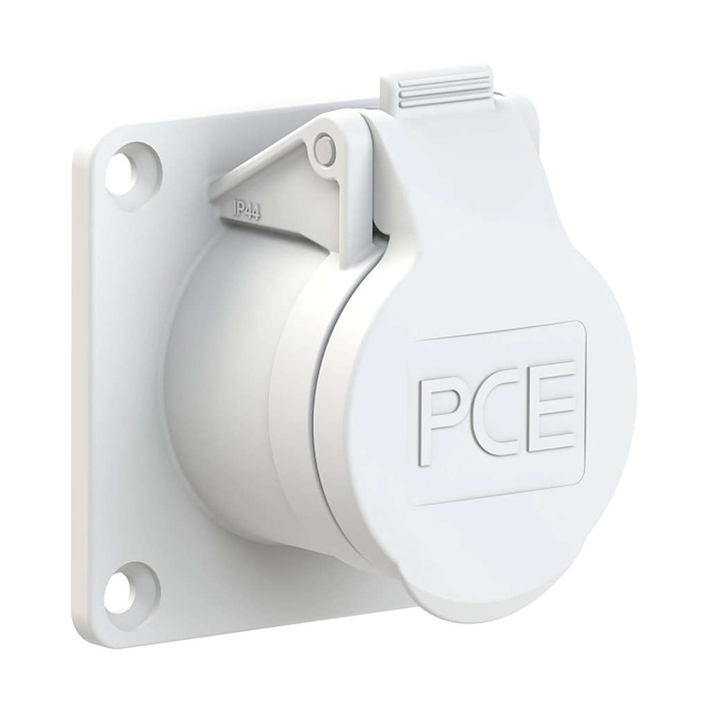 PCE CEE wandcontactdoos inbouw, 24 V / 42 V, 16A, 3-polig, IP44, grijs. Front grootte: 70 x 70 mm. Uurstand: 12h. Meer informatie »