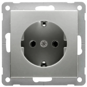Peha wandcontactdoos met randaarde, serie: Badora, kleur: aluminium. Bedrading aansluiten middels steekklemmen.
