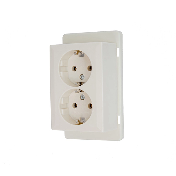 Power deksel met dubbele randaarde contactdoos, geschikt voor lasdoos 2070 001. Met aansluitdraden. Afmetingen (l x b x d): 125 x 73 x 52 mm. Kleur: crème, IP20. Meer informatie »