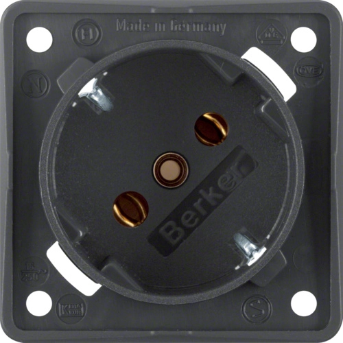 Berker 941952505 Integro Flow wandcontactdoos randaarde kindveilig schroefklemmen antraciet mat
