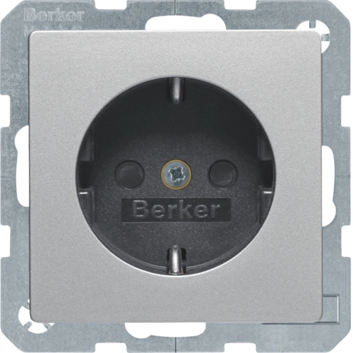 Berker 47496084 wandcontactdoos randaarde kindveilig tekstveld Q1/Q3/Q7 aluminium