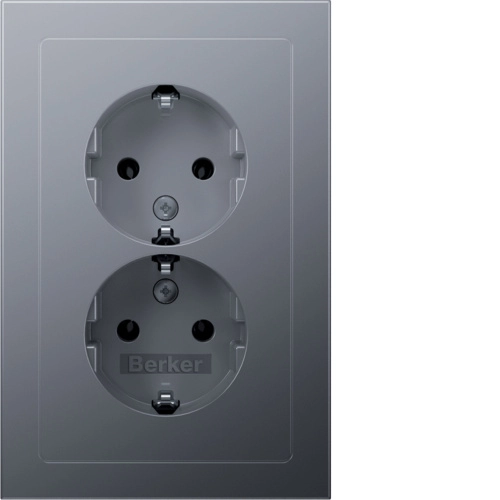 Hager Berker dubbel stopcontact met randaarde, Q1, aluminium mat. Geschikt voor enkele inbouwdoos.Meer informatie »