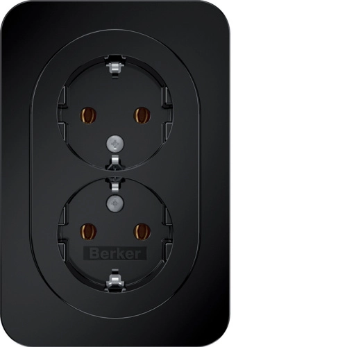 Hager Berker dubbel stopcontact met randaarde, R1, zwart glans. Geschikt voor enkele inbouwdoos.Meer informatie »