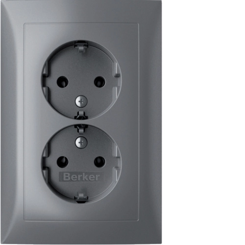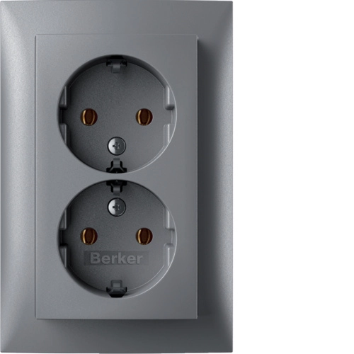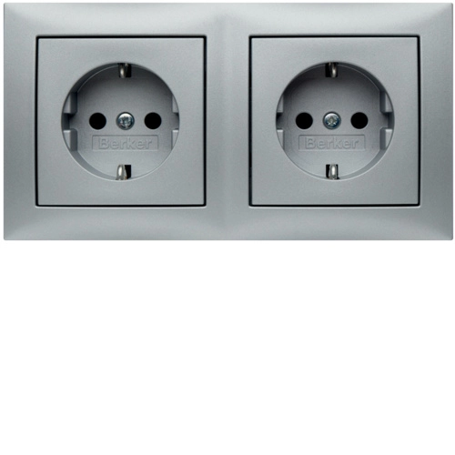 Hager Berker dubbel stopcontact met randaarde, S1, aluminium mat. Geschikt voor enkele inbouwdoos.Meer informatie »
