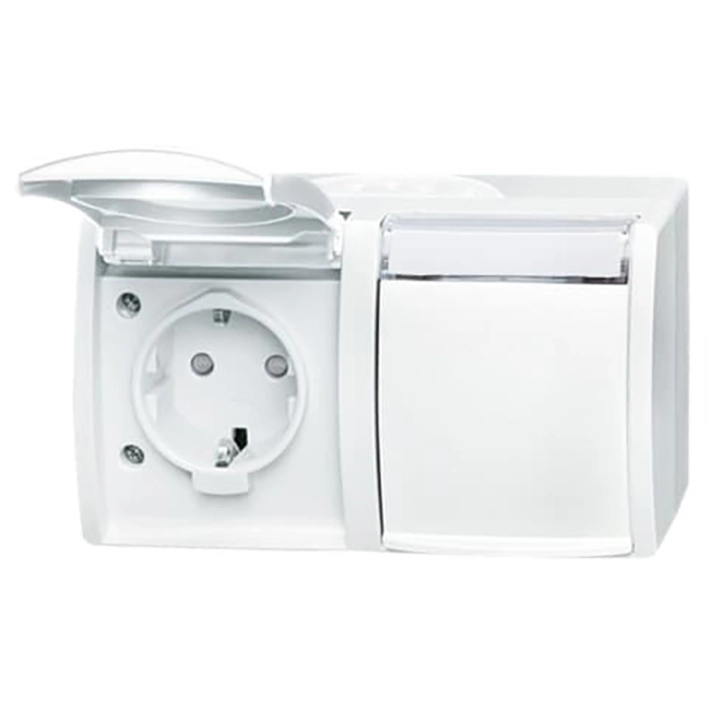 Busch-Jaeger 20 EW-54 wandcontactdoos randaarde klapdeksel opbouw Ocean IP44 alpinwit