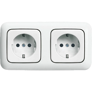 Dubbele wandcontactdoos met randaarde en Safety+ (kinderbeveiliging). Kan alleen toegepast worden in speciale ovale inbouwdozen, bijvoorbeeld type H140, H150, AT1139.Meer informatie »
