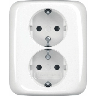 Busch-Jaeger dubbel stopcontact met randaarde en verhoogde aanraakbeveiliging, Reflex SI. Geschikt voor enkele inbouwdoos.Meer informatie »