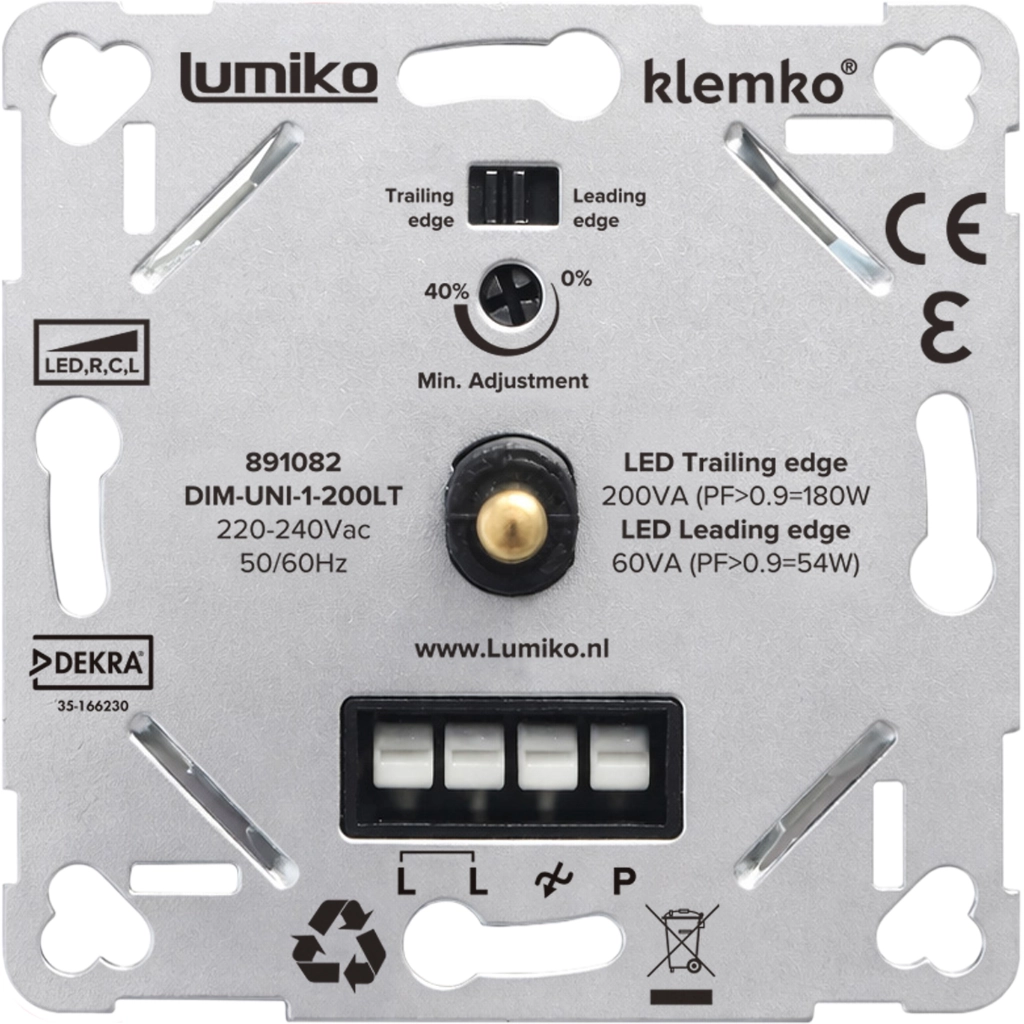 Klemko DIM-UNI-1-200LT Lumiko 891082 universele LED-dimmer fase af en aansnijding 1-200W