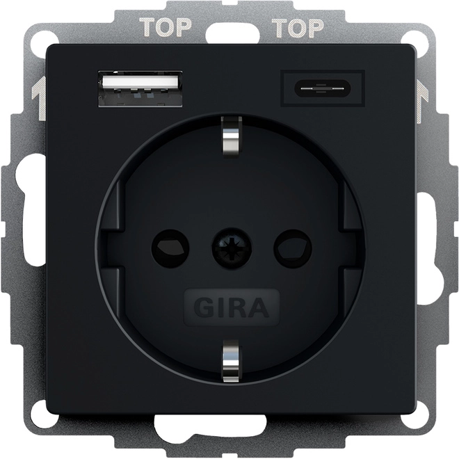 Gira 236900 USB wandcontactdoos 2-voudig USB-A en USB-C zwart