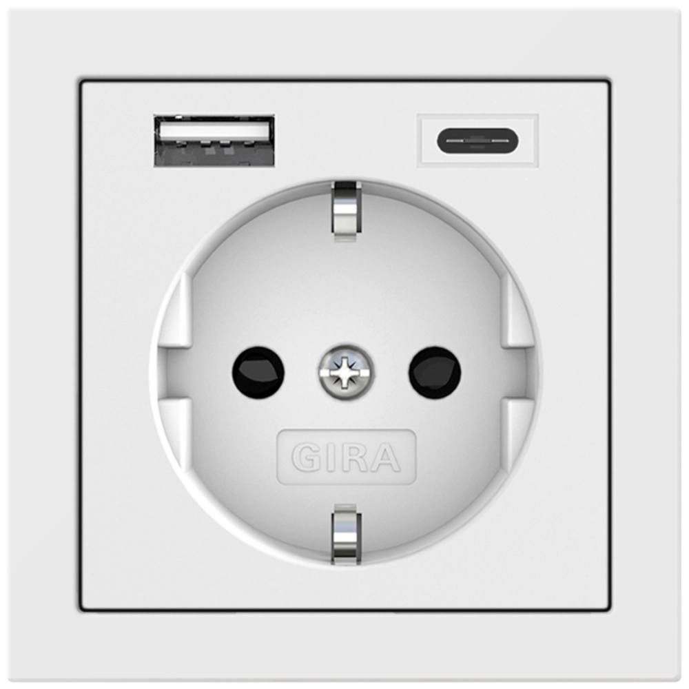 Gira 245927 wandcontactdoos randaarde USB-A en USB-C met verhoogde aanraakbeveiliging Systeem 55 wit mat