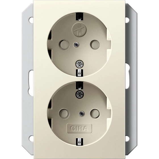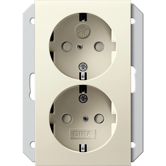 Gira 479301 wandcontactdoos 2-voudig randaarde compleet voorbedraad voor duo-inbouwdoos Standaard 55 creme glans